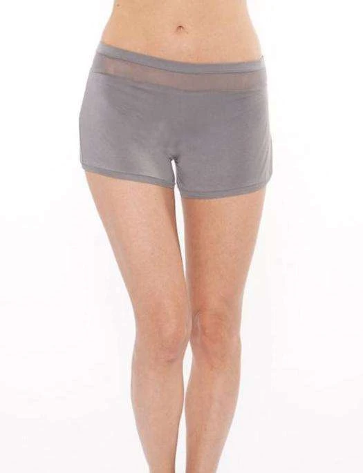 Pair these super soft shorts with any of the Douceur tops. Simple and soft as loungewear or pajamas, these shorts define comfortable. The see-through mesh that sits just below the waist adds a nice touch of sexy and looks great with the mesh-edged tops.