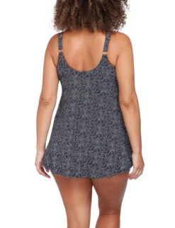 - Internal built in swim pant – Our curve fit and plus size Delacroix swimdress has a full high waist brief built in under the flared A-Line dress. This swimpant is the same fabric as the outer layer with powermesh lining.
