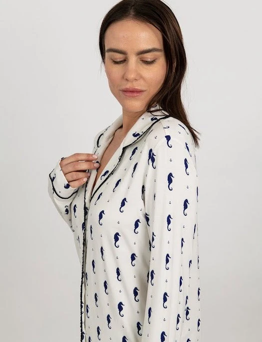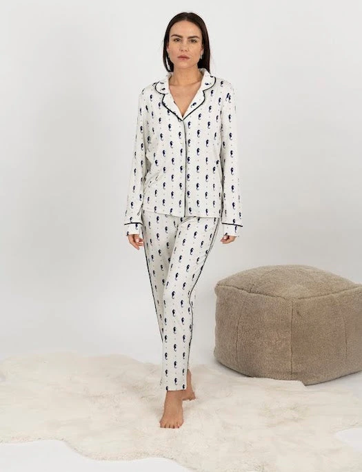 Classic pajama set. Aspen Dream’s new slim silhouette pajama is made of organic Bamboo, which feels cool to the touch and slims the silhouette with the side seem piping detailing, slightly higher waist and slimming cut of the pants . Its slim fit hugs your body and falls in all the right places easily making it your favorite at-home look. Pants cut at the ankle and will not need to be tailored. Your go-to favorite time and time again, even after hundreds of washes and wears.