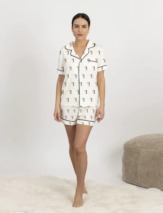 Classic pajama set. Our new slim silhouette pajama is made of organic Bamboo, which feels cool to the touch and extremely soft. Shorts are cut longer for your comfort when warn around the house. Your go-to favorite time and time again, even after hundreds of washes and wears.