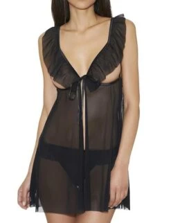 The Aubade Boîte à désir range focuses on super sexy minimal items with a touch of French elegance. A one-size set that’s all sheer tulle with satin ribbon ties for adjustable fit, adding more sensual thrill to tying and untying knots. The babydoll is complemented with a side tie thong to match.