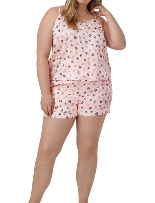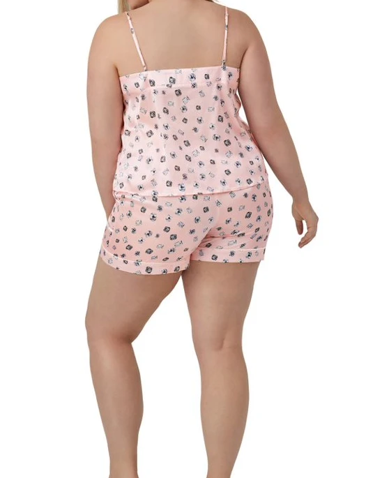 Slip into effortless luxury in our shorty pajamas made with washable silk satin. V-neck cami has adjustable straps for a perfect fit. Shorts with pockets and an elastic waistband with self-fabric drawstring are ideal for lounging any time.