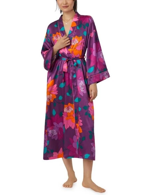 Lounge comfortably in our 100% silk robe. Robe contrast piping, tie-front closure, and teardrop self-fabric belt loops and belt. Crafted in 100% Washable Silk, so it’s a dream to care for.