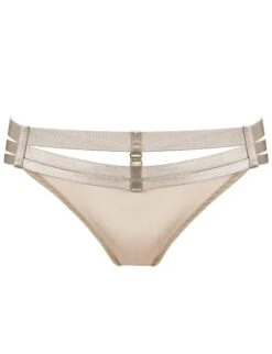 True Bordelle aesthetic in an everyday thong, made from soft stretch mesh and Signature satin elastic strapping, this style is fully adjustable on the hip and finished with 24k gold plated hardware.