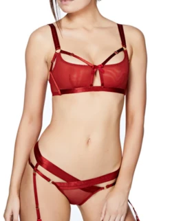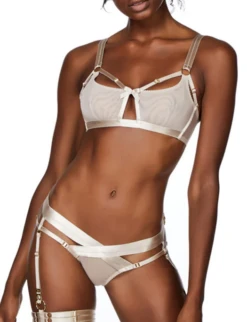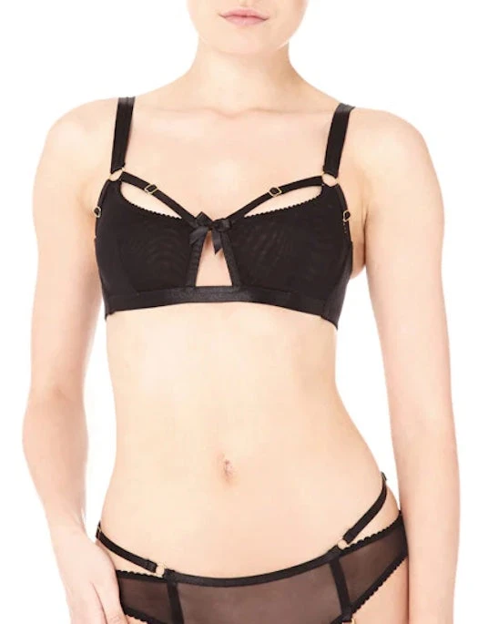 The ideal everyday Bordelle piece, crafted from soft stretch mesh with adjustable satin elastic strapping and a peep detail at the centre front.
