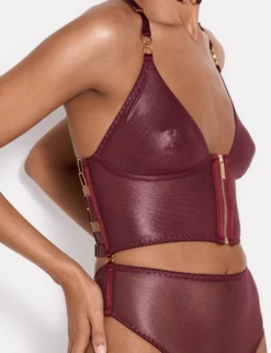 Secured together with 24k gold plated swan hooks, the Cadi Body can be worn as a body longline soft cup bra or high waist thong, the ultimate in versatility. Featuring luxurious foiled mesh panels and adjustable back strap detailing, this showpiece body is a standout piece from the Cadi collection.