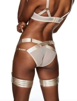 A modest take on Bordelle’s favorite Bondage Harness brief, the soft mesh panels combined with adjustable hip straps make for a surprisingly wearable piece. The detachable suspender straps can be worn with stockings or garters.