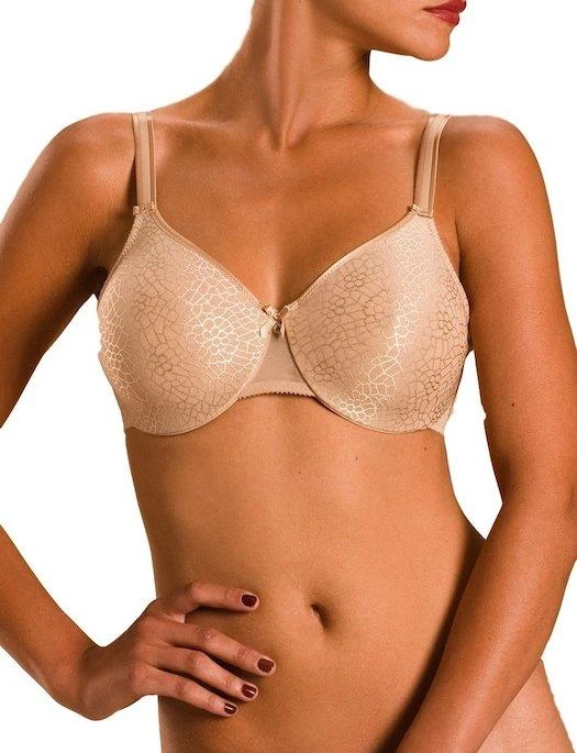 The 1891 Chantelle C-Magnifique Seamless Molded Bra is as comfortable as your favorite pair of sweatpants and you’ll never want to take it off. It’s a smooth, full coverage bra with cups that provide a round shape with a minimizing effect; meaning this bra reduces the appearance of your bust. With it’s beautiful floral pattern design this bra will become one of your favorites- it is one of ours.