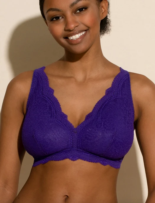 - Non-padded tall triangle shaped cups lined with power mesh for added support.
