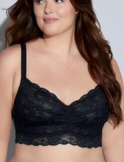 The Cosabella Never Say Never Extended Sweetie bralette is made of soft, stretch non-sheer scalloped lace that lays flat and is lined with power mesh for support. It has wide straps that won’t dig and a supportive band under the bust. Pullover style.