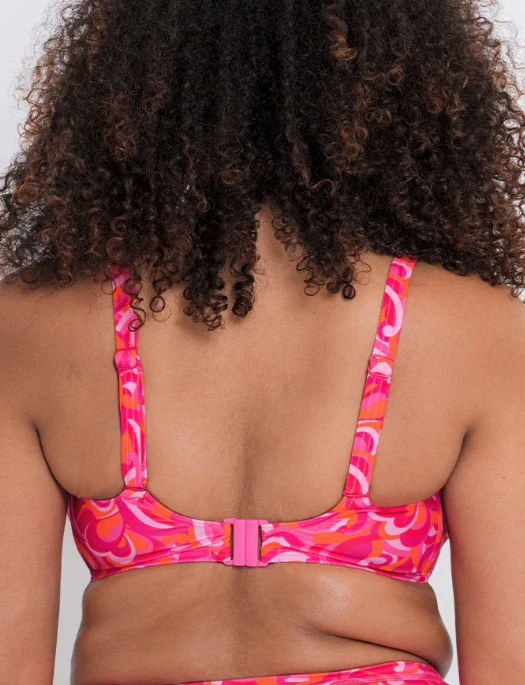 Introducing a hypnotic allover print in clashing red/pink/orange creating a visual feast for the beach or poolside. Scoop Balcony Bikini featuring Upfront Technology and featuring ‘Xtra Life Lycra’ for long lasting shape retention and resistance to heat, chlorine and sunscreen.
