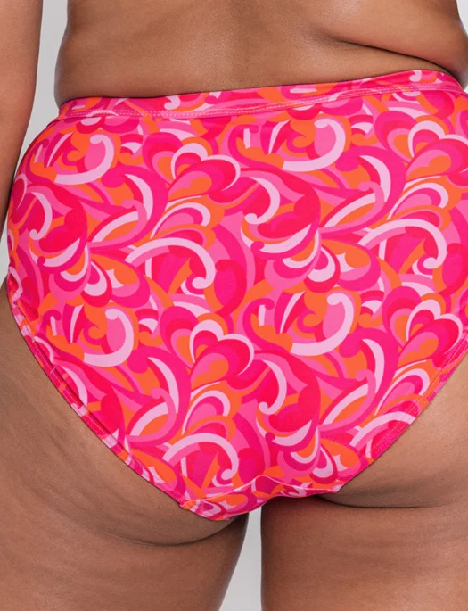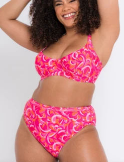 Introducing a hypnotic allover print in clashing red/pink/orange creating a visual feast for the beach or poolside. High Waist Bikini featuring ‘Xtra Life Lycra’ for long lasting shape retention and resistance to heat, chlorine and sunscreen.
