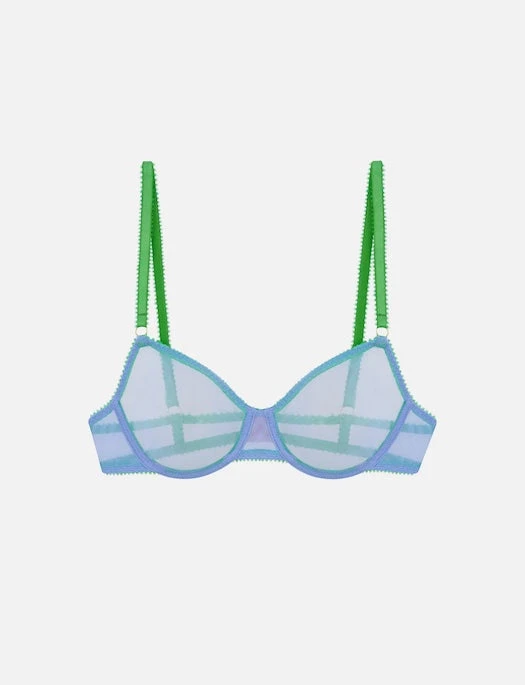 The Coralee Clean Tulle Underwire Bra is made from unlined stretch tulle that sculpts to the shape of your boobs. Her sheer cups are moulded for a clean look, and her straps are decorated with a soft picot-edge. The underwire provides a natural silhouette whilst giving you the support you need, all day.