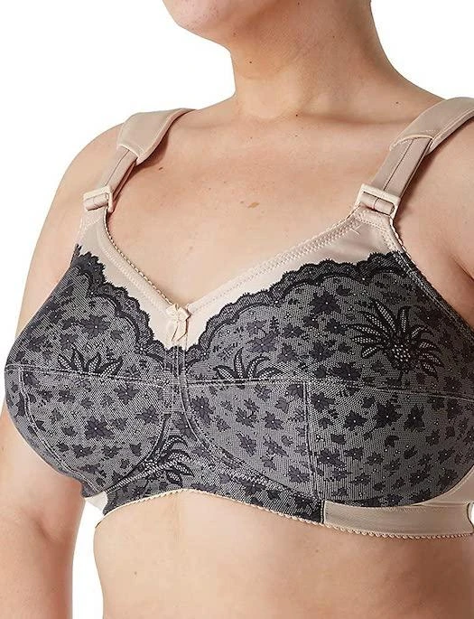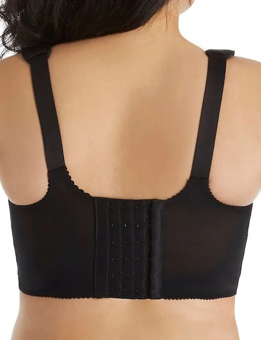 This wireless multi-part cup bra is unpadded and has horizontal and vertical seams to create hold and shape. There is elastic along the neckline and underband to help maintain fit. The tall, smoothing sides and back are made with supportive powermesh and the wide, non-stretch straps have buckle style adjustments that you can reposition for your comfort.