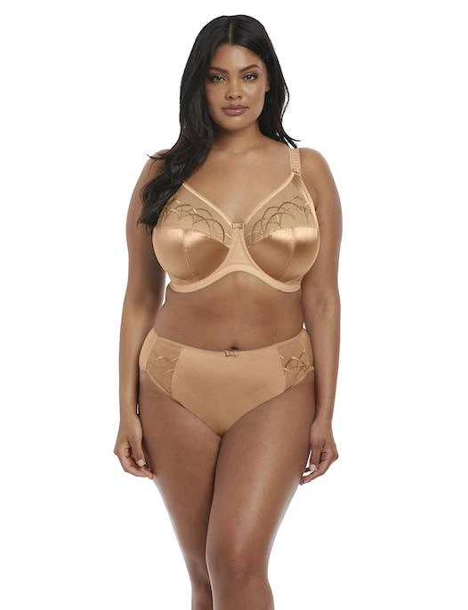 Smart and sexy, the EL4030 Elomi Cate Full Cup Bra is a beautiful choice for full-figured women. The unique design provides fabulous support and shaping in a full cup style while the satin cups with an art deco embroidered mesh top panel add a lovely touch. The 3-part seamed cups provide maximum lift and shaping for larger busts and create a youthful, rounded silhouette. Comfort straps are fully adjustable and the leotard style back helps straps stay on your shoulders. With its smooth seams and sleek design, the Elomi Cate Bra will look great under all your clothes!