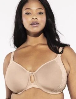 The Elomi Charley Bandless Spacer Moulded Bra is complete with pretty floral lace details. The everyday style features seamless molded cups made from ultra-light spacer fabric for perfect support and rounded shape.