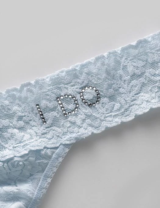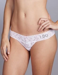 The perfect flirty, low-rise thong for brides or brides to be. The super-comfortable waistband spells “I DO” in Swarovski crystals. Comfort and confidence, isn’t that the point? The back allows you to show off without worrying about panty lines under your wedding dress. The Hanky Panky “I Do” low rise thong comes in white, ivory and blue.