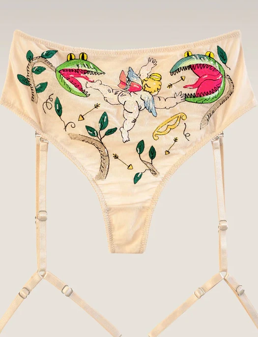 Little Cupid is in trouble! The embroidery not only looks beautiful, but also raises questions. How did Cupid end up in the jungle, and what will happen to him next? As always, the answer can be found on the back of your panties! Of course, this little Venus Trap has fallen in love with him! How could anyone not fall in love?