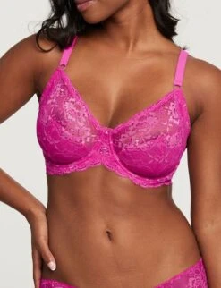 Takes the weight off your shoulders and ooze confidence in the smoldering lace Montelle Muse full coverage bra. The 4-part cup supports and shapes beautifully in this stormy shade. Lined with supportive power mesh for extra lift and comfort.