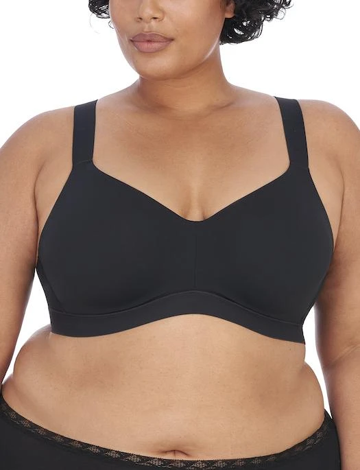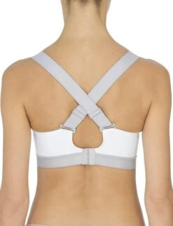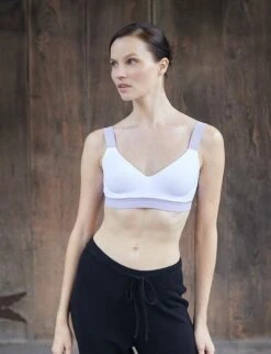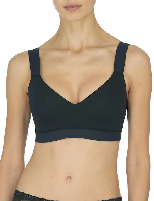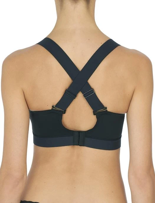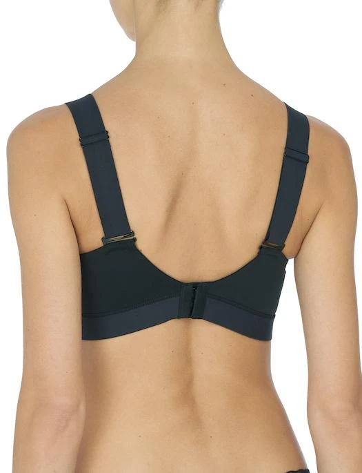 The Natori Dynamic Sport Bra is a high impact, modern coverage sport bra. The pad and fabric work together to minimize bounce while the performance fabric wicks away sweat to keep you dry. A wide elastic bottom band helps anchor to help the bra stay put and thin, light foam pads and a concealed underwire offer great comfort and support. Hook & eye back closure and fully adjustable, convertible straps offer a custom fit.