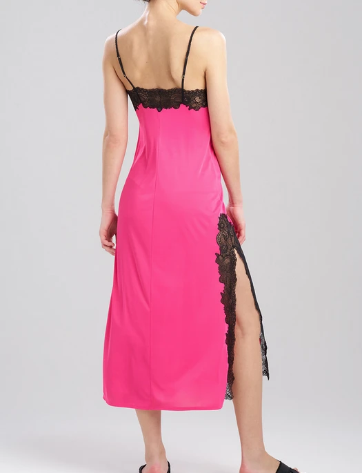 Lace applique at neckline and side slit