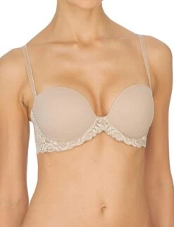This strapless is a take on your favorite Natori Feathers bra. The dramatic plunge is defined with intricate lace detail and fcan be worn with multi-way straps that offer versatility while still providing comfort, support and a flattering silhouette. The Feathers Strapless bra is perfect for petite busted women who want the freedom of a strapless/convertable bra that moves with their silhouette.