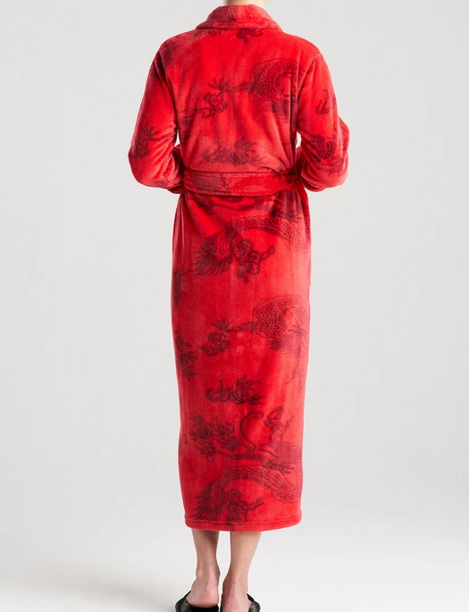 Our plush printed micro velour robe has an extra soft and cozy handfeel. Featuring our iconic dragon pattern. The perfect one-of-a-kind gift.