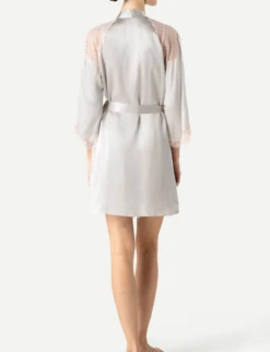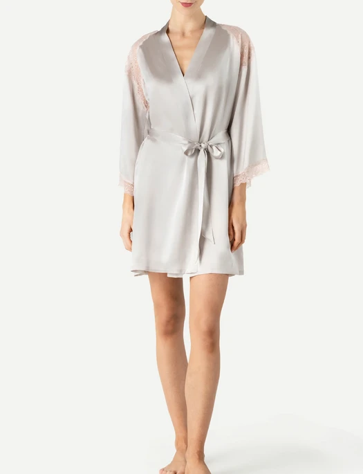 Sweet dreams are made of silk. Wrap yourself in the luxurious feeling of sustainable silk with the Precious Sunset Short Silk Kimono. Kissed with beautiful hand-cut lace, this silk kimono will keep you feeling fabulous whether you’re lounging at home or preparing for a night out.