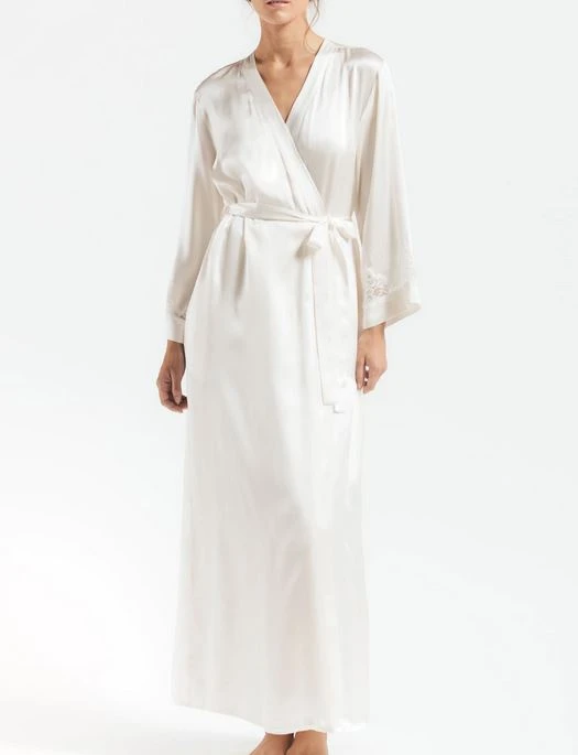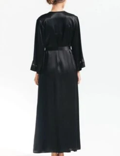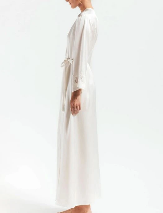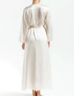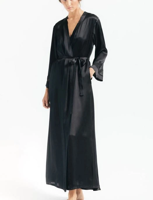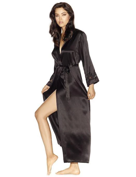 With its silk and vintage lace construction, the NK iMode Morgan Robe gives an elegant first impression. Easy living in silk charmeuse daintily trimmed robe with a dash of lace and indispensable side pockets.
