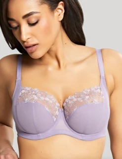 Experience superior comfort in this full coverage bra. 4-part seamed mesh-lined underwire cups. Beautiful embroidered detail on top portion of cups. Fully adjustable stretch straps for the perfect fit.