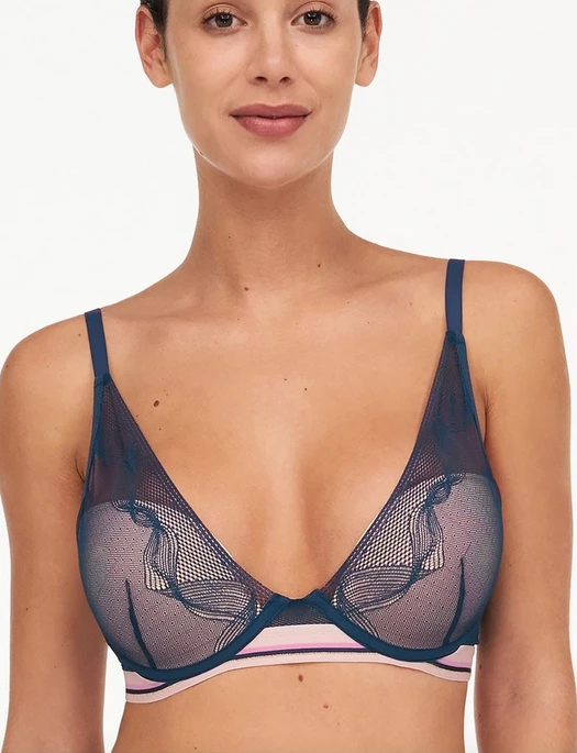 Eye-catching lace with multicolored geometric details and a seductive plunging neckline come together for a feminine yet dramatic look in the Paola Plunge T-Shirt Bra.
