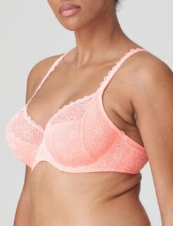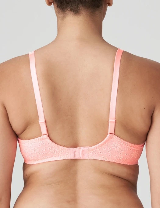 Three-part full cup bra in eyelet lace that feels like a second skin. The cute trim on the upper cups accentuates your cleavage and continues elegantly onto the straps. Pink Parfait is a shimmering pink with a fluorescent effect. A bold color that suits both lighter and darker skin tones.