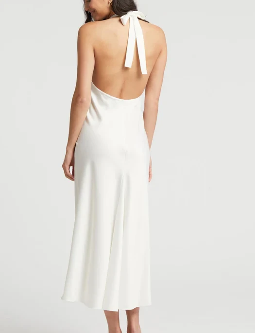 A sophisticated and timeless staple that perfectly wraps around the body, with an awe-worthy open back. Perfect for the simplicity of the bedroom, an impactful Bridal piece or exchanged to be worn outside of the bedroom, this charmeuse gown is the epitome of elegance. Make it a perfect pair with the Charming Robe.
