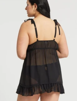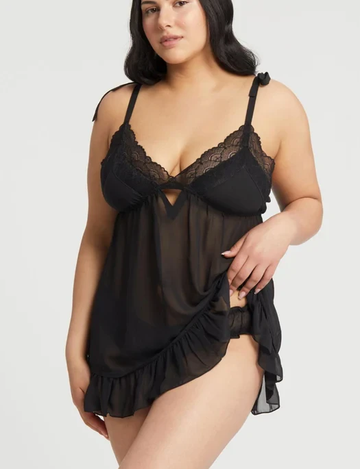 Show yourself who’s queen with the luminous presence of the Dahlia Babydoll and Panty. This style features a unique lace detailing at the neckline, delicate bows on the straps, and a comfortable elasticized panty waistline.