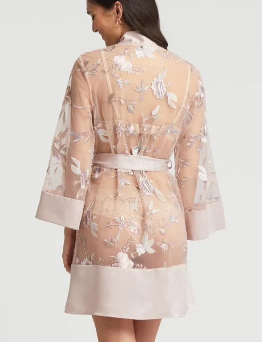 Adorn your evenings with the luxurious look of the Stunning Cover Up. Intricate floral embroidery and charmeuse panels create a classic silhouette.