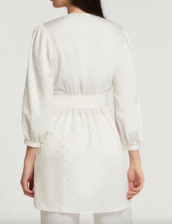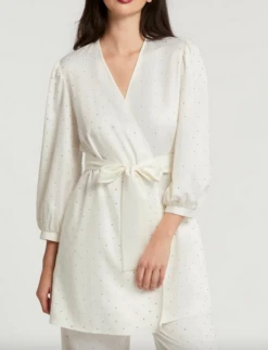 The Marilyn Coverup beautifully enhances a glamourous, elegant, and daring attitude. The Marilyn Coverup incorporates charismatic crystals that sparkle from any angle, bishop sleeves and set-in belt. The Marilyn Coverup is splendid for our vivacious brides, or even our outgoing lovers. Either way, The Marilyn Coverup demands to be enticed by others in and out of the bedroom.