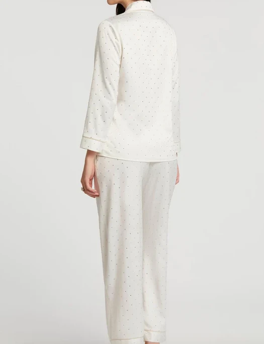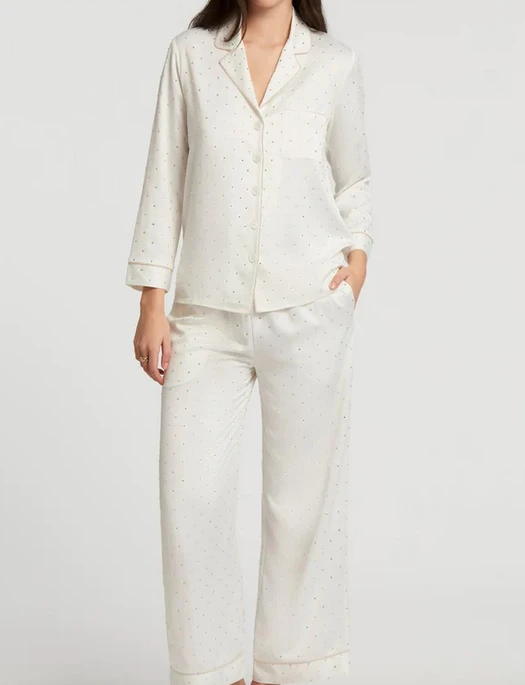 The Marilyn PJ beautifully captures a glamourous, elegant, and daring attitude. The Marilyn PJ incorporates charismatic crystals that sparkle from any angle, beige piping, and relaxed fit. The Marilyn PJ is splendid for our vivacious brides, or even our outgoing lovers. Either way, The Marilyn PJ demands to be enticed by others in and out of the bedroom.