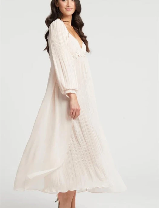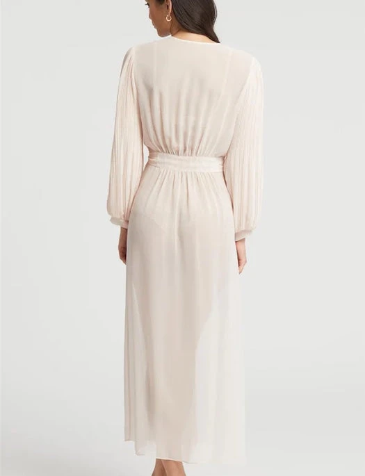 True Love Robe delivers a romantic, relaxed feeling that encourages love, elegance, and ease around the house or on the Bride’s special day. The pleated chiffon bishop sleeve billows at the wrist.