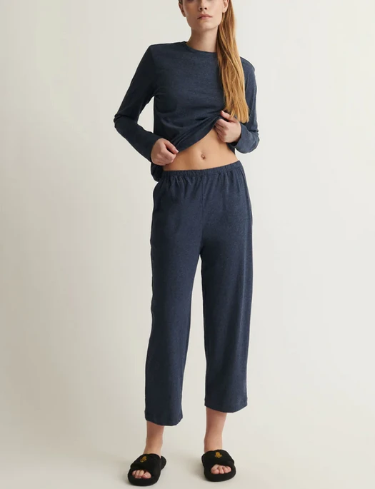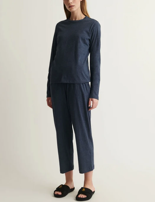 Snuggle up in a long sleeve tee and perfectly cropped pant, both made from organic pima cotton.