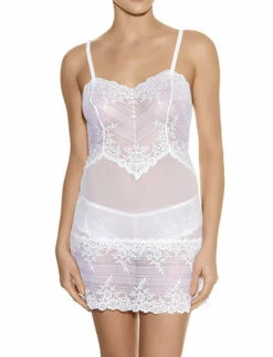 The Wacoal Embrace Lace Chemise is sheer mesh framed by cross-dyed floral stretch lace with adjustable shoulder straps.